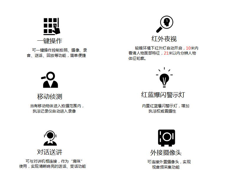 欧付宝DSJ-200F 执法仪(法院/政府/城管)拍摄像素高达5000万,广角镜头137,拍摄画面精细而全面,大容量电池支持陆续在工作12小时不断电
